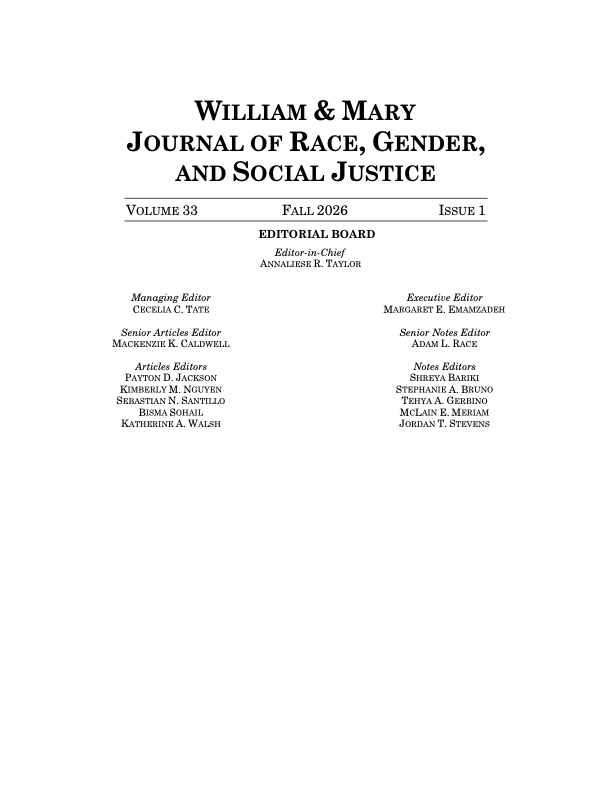 Membership on the Journal is both a rewarding and challenging experience. Journal membership is paramount to a successful legal education and prepares students for the rigors of private practice, public interest law and judicial clerkships. For more information, please contact Annaliese Taylor, Volume 33 Editor-in-Chief, at artaylor02@wm.edu.